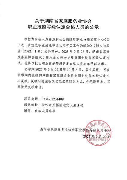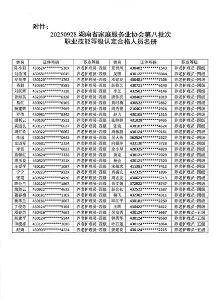 关于20250928第八批次职业技能等级认定合格的公示